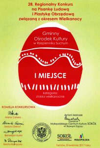 W kategorii pisanka tradycyjna i plastyka obrzędowa – dorośli: II miejsce zajęło Stowarzyszenie Rzepiennik Jutra z Rzepiennika Suchego.