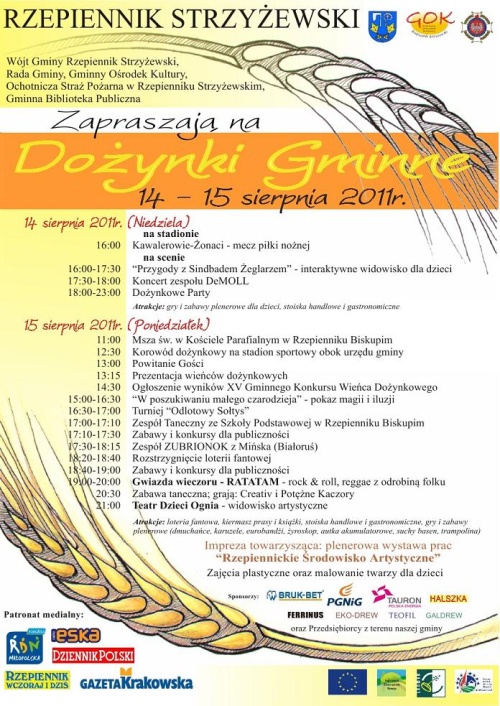 Zapraszamy na Gminne Dożynki w Rzepienniku Strzyżewskim. Zobacz program