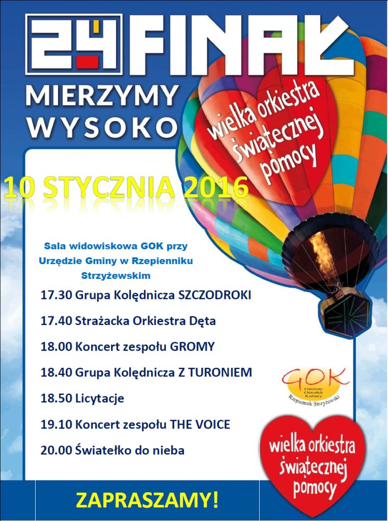 W wieczornym programie na sali widowiskowej GOK przy Urzędzie Gminy w Rzepienniku Strzyżewskim nie zabraknie występów artystycznych, licytacji oraz widowiskowego światełka do nieba.