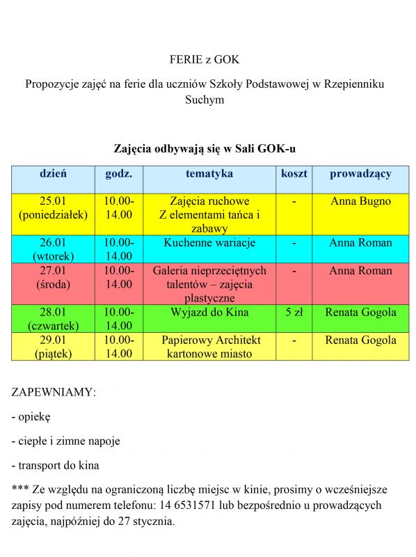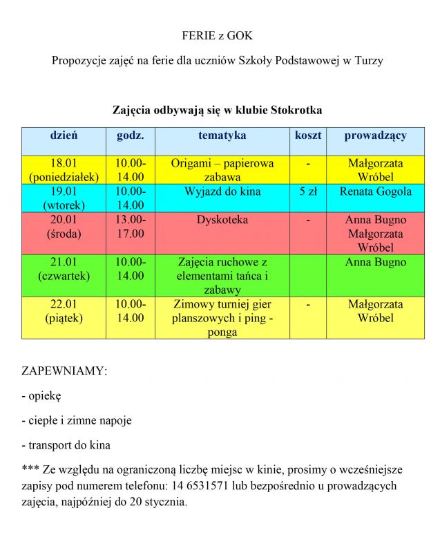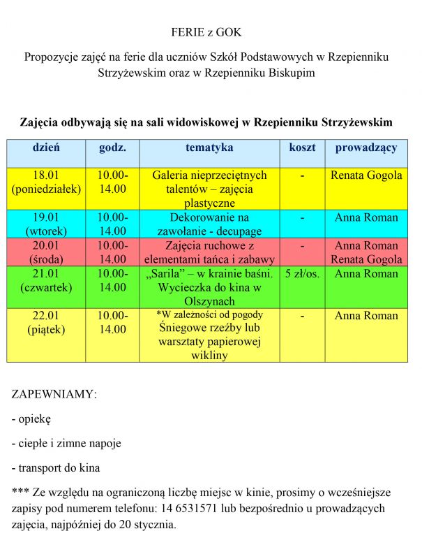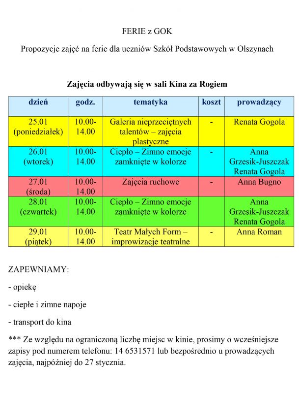 Mamy dla Was propozycję ciekawych zajęć na feriach zimowych.