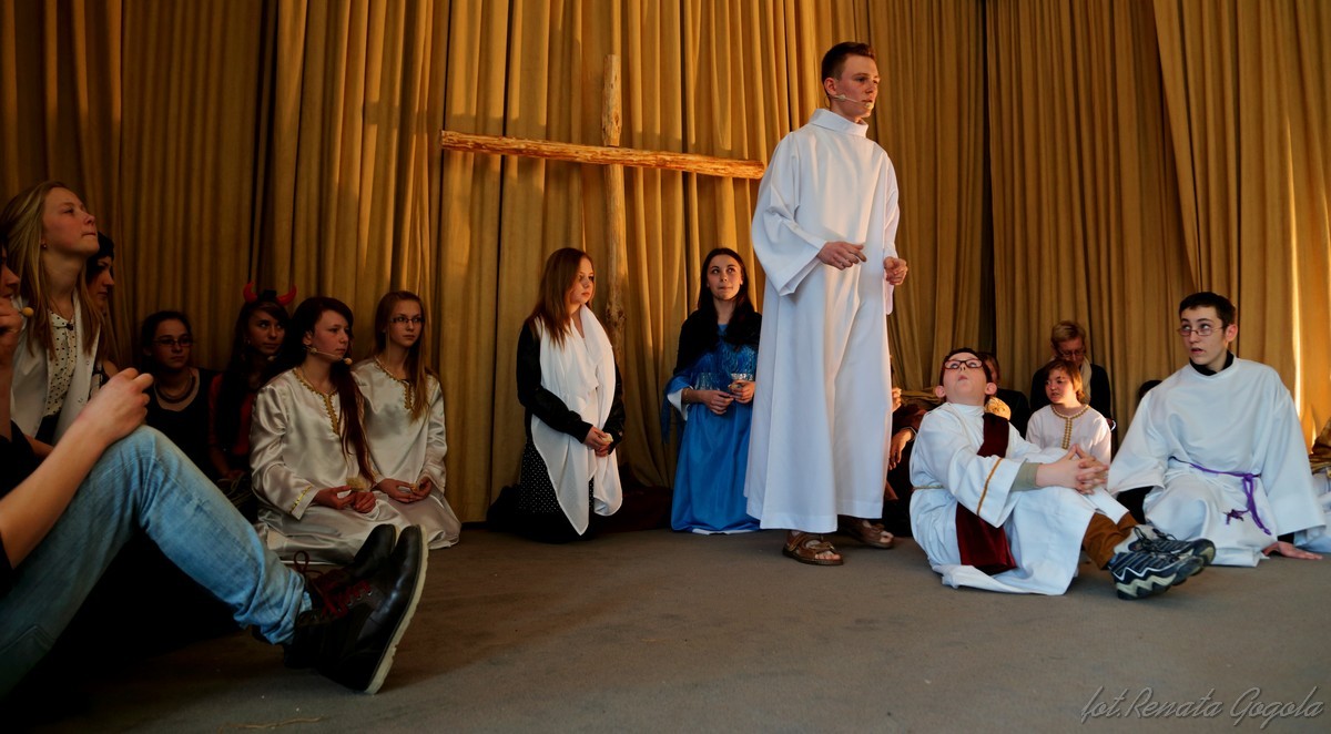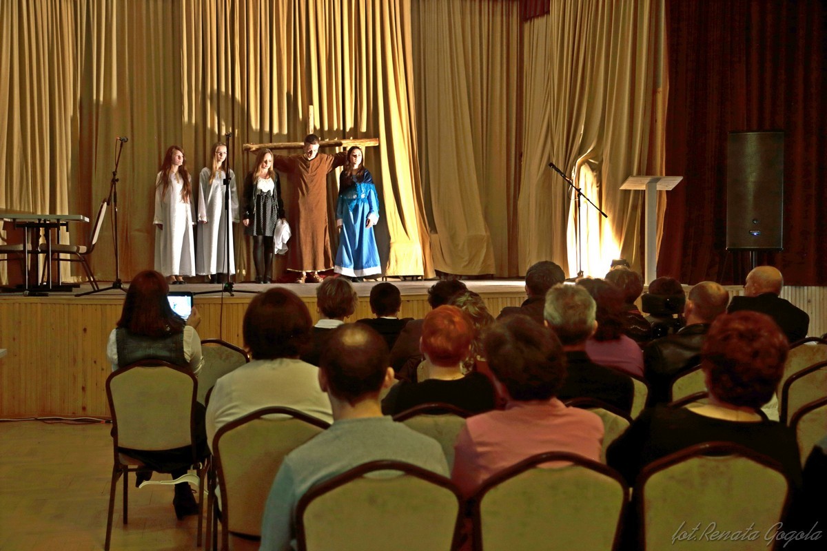 W Niedzielę Palmową na sali widowiskowej GOK w Rzepienniku Strzyżewskim młodzież i dzieci niepełnosprawne zaprezentowały współczesne Misterium Męki Pańskiej „ Jezus w wielkim mieście” przygotowane pod kierunkiem Barbary Duran.