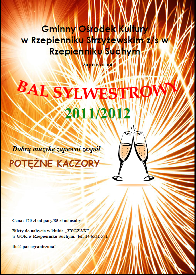 Gminny Ośrodek Kultury w Rzepienniku Strzyżewskim z/s w Rzepienniku Suchym zaprasza na Bal Sylwestrowy 2011/2012