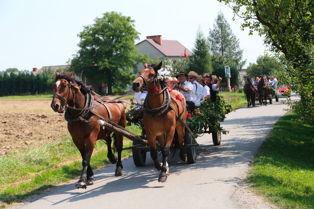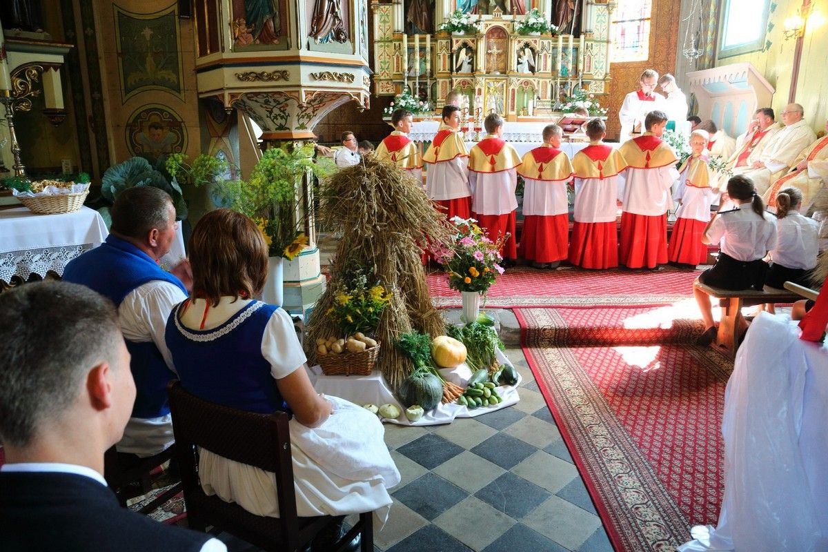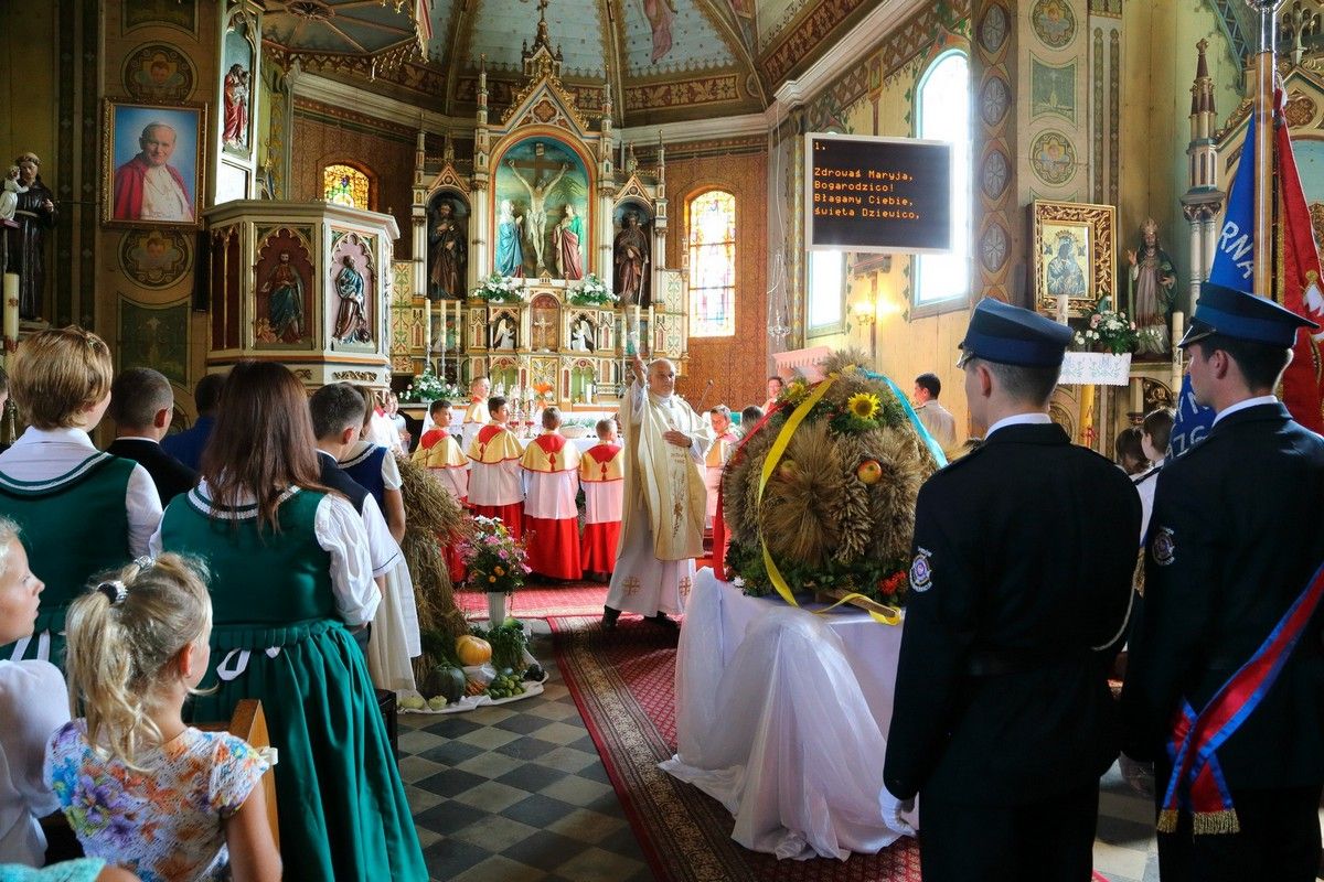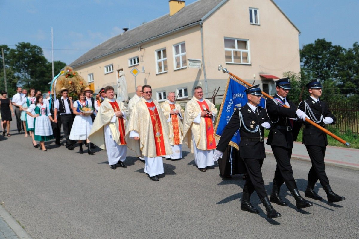 Poświęcenie wieńca, msza św. korowód dożynkowy, tak w tym roku rozpoczęliśmy obchody święta plonów, po raz pierwszy przygotowanego przez panie ze stowarzyszenia „My Kobiety” we współpracy z GOK- iem, wójtem Markiem Karasiem, sołtysem i radą sołecką. Wieniec dożynkowy, który można było podziwiać na uroczystości uwiły własnoręcznie panie ze stowarzyszenia.
