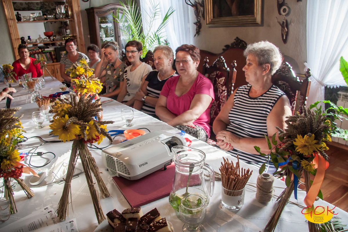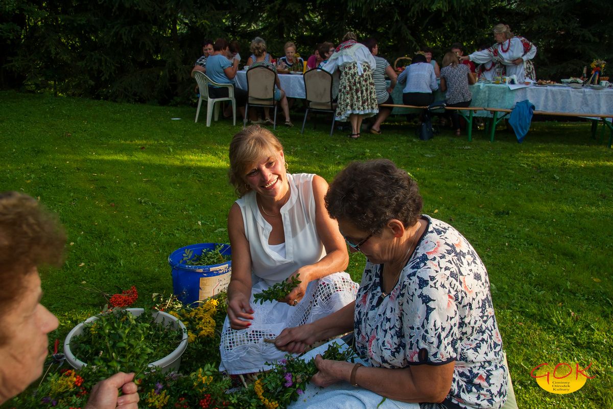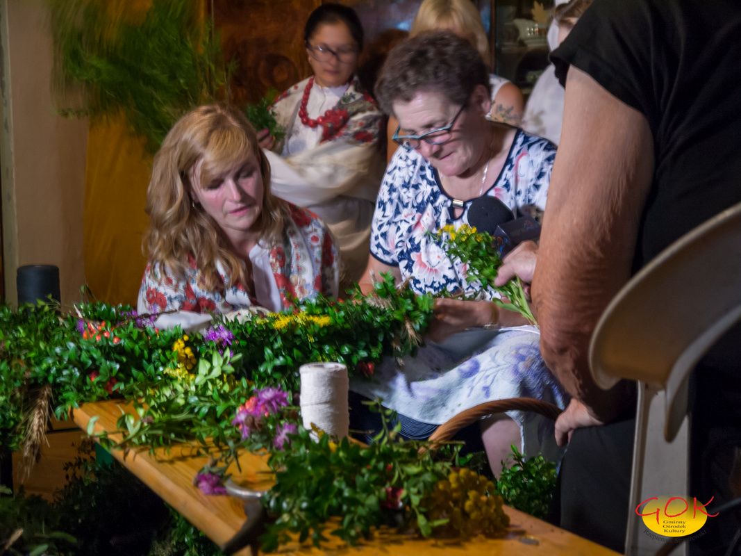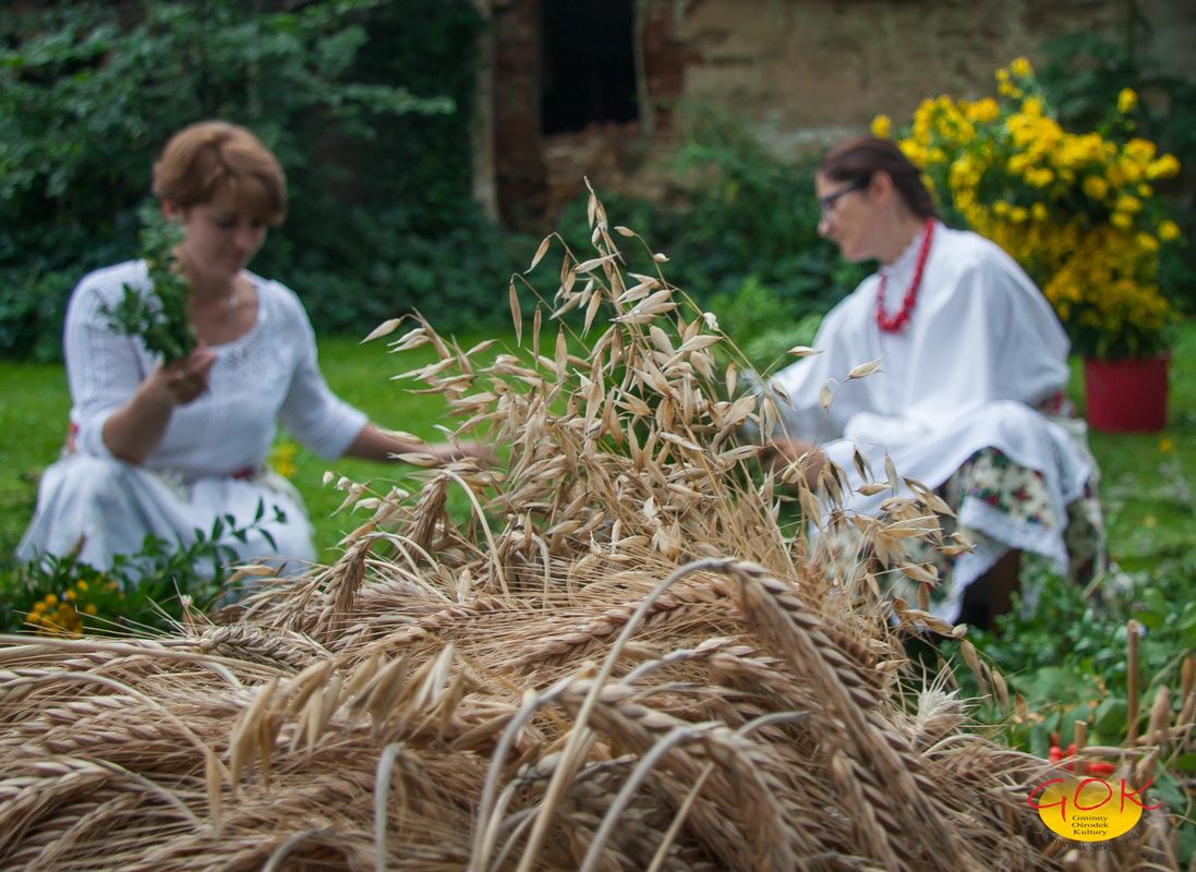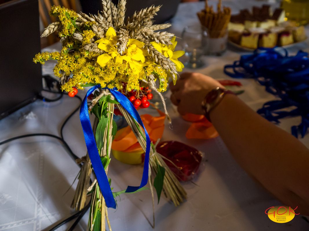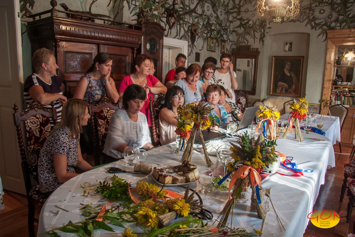 Warsztaty wicia wieńca dożynkowego we dworze w Rzepienniku Biskupim.