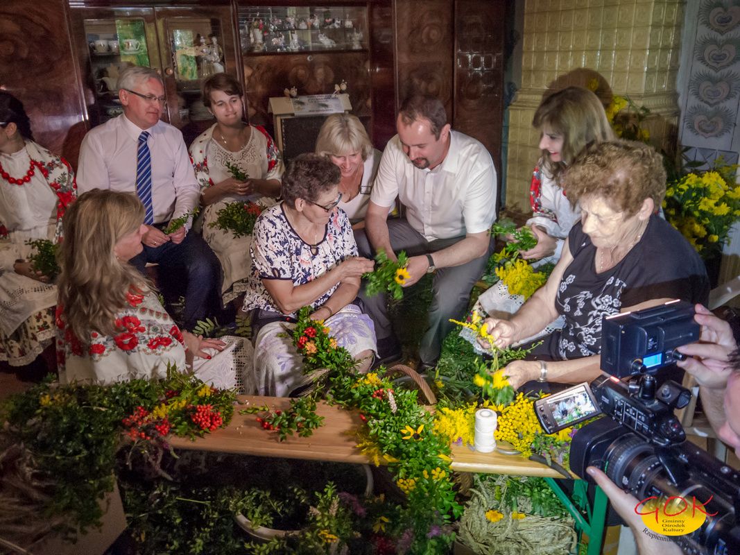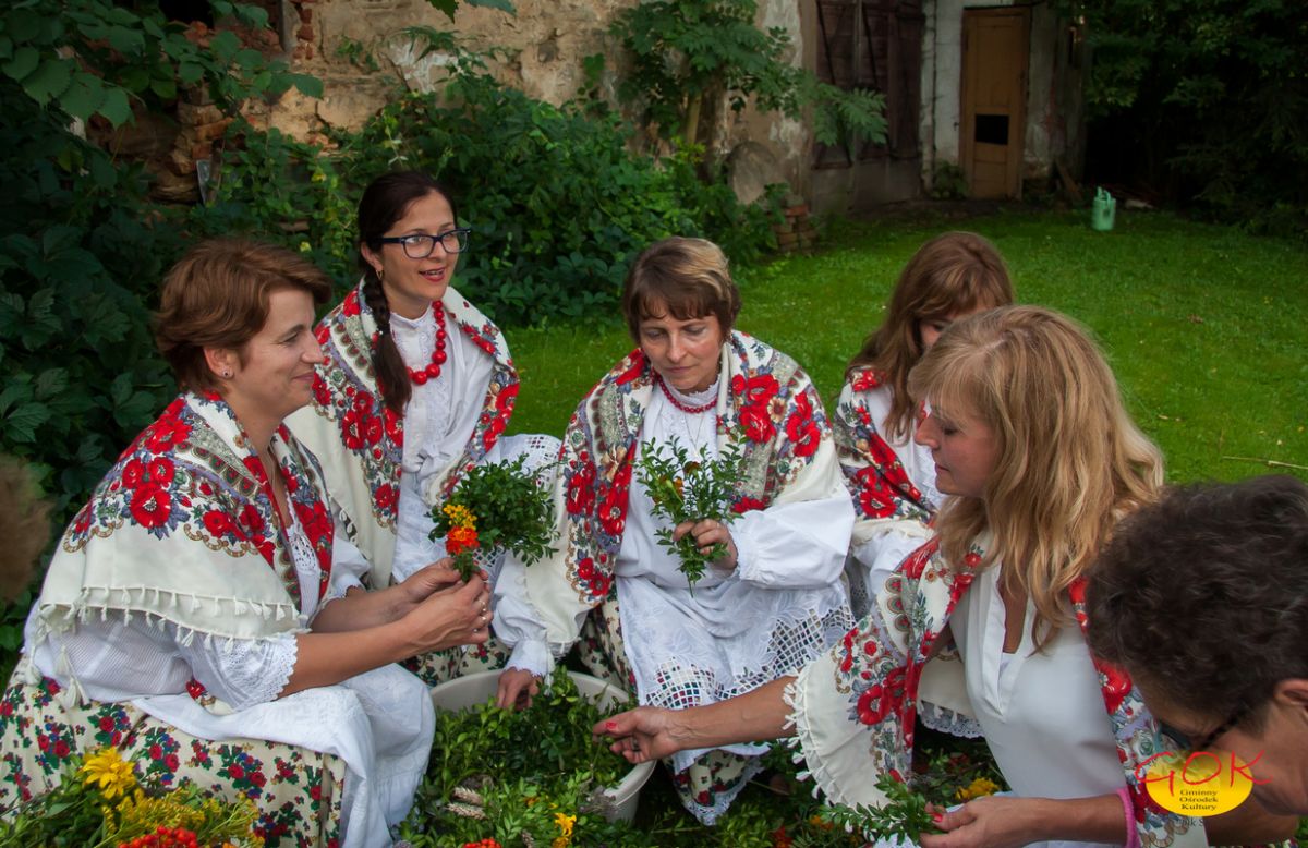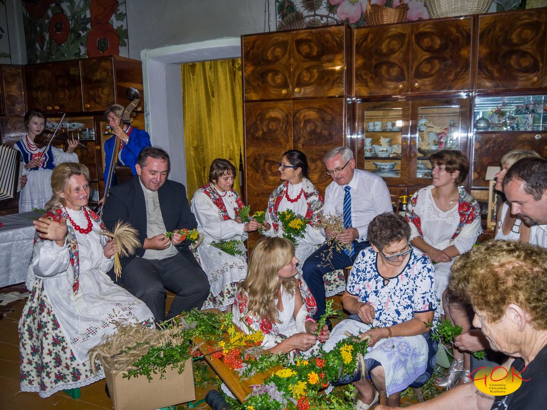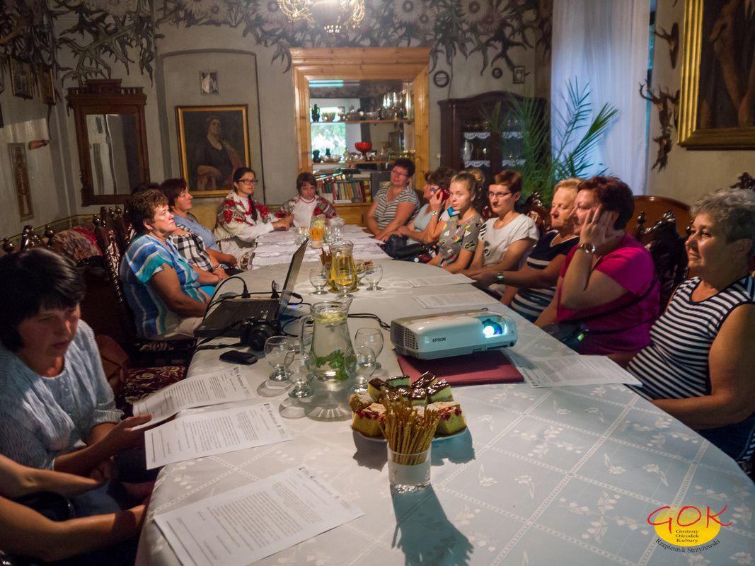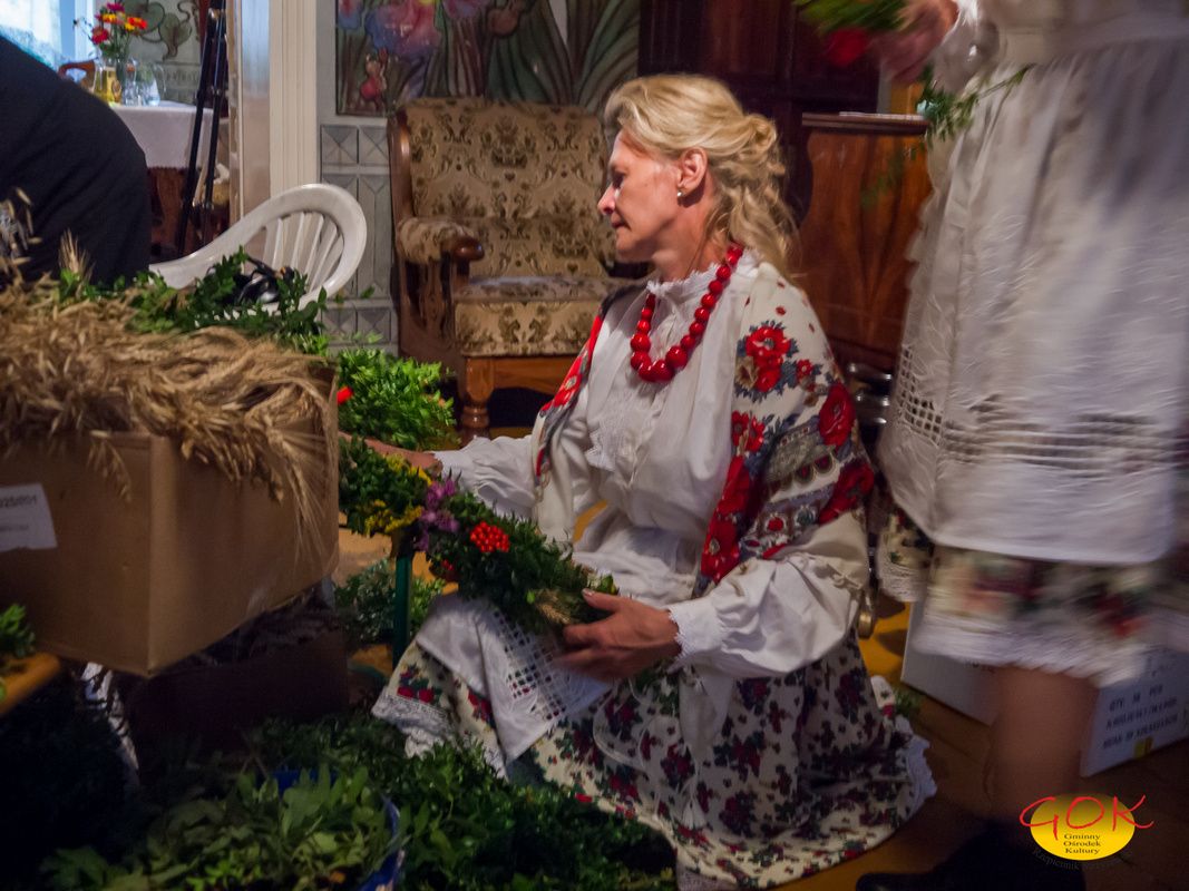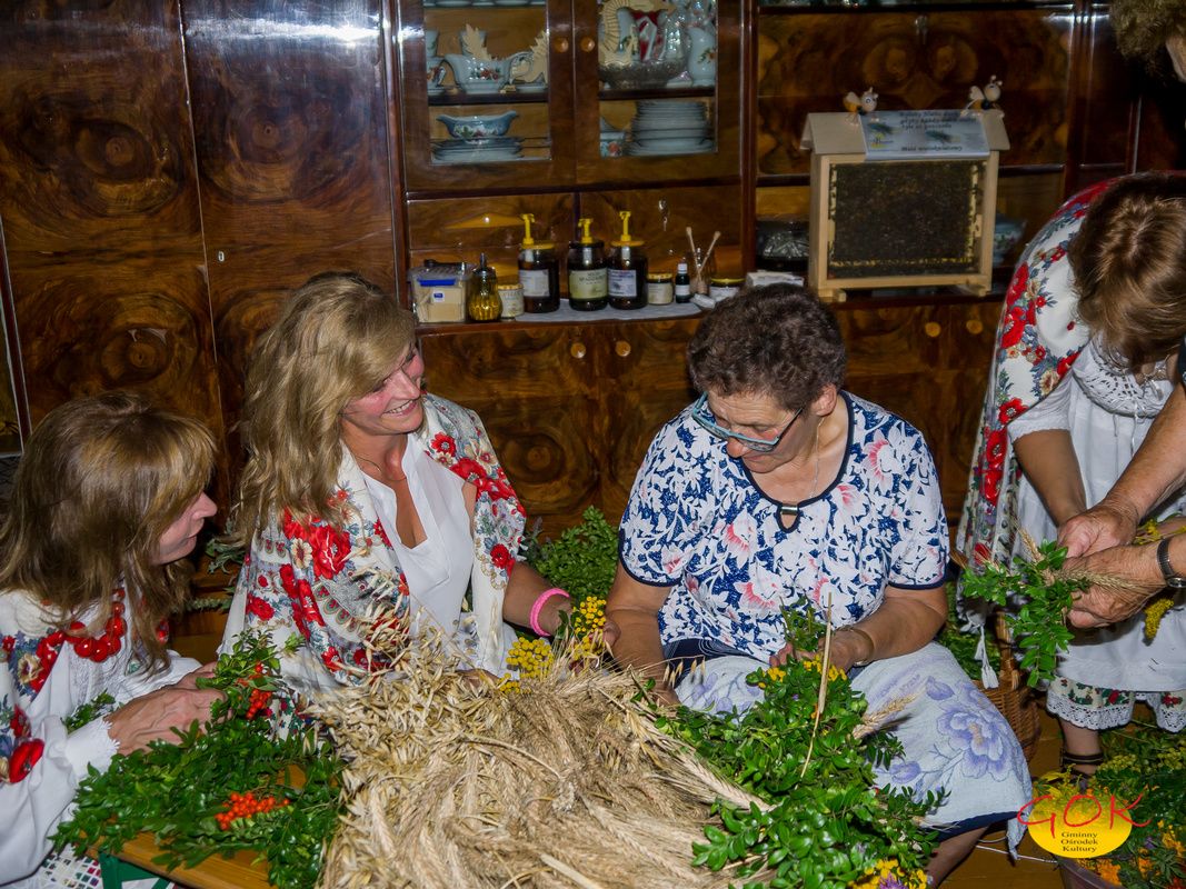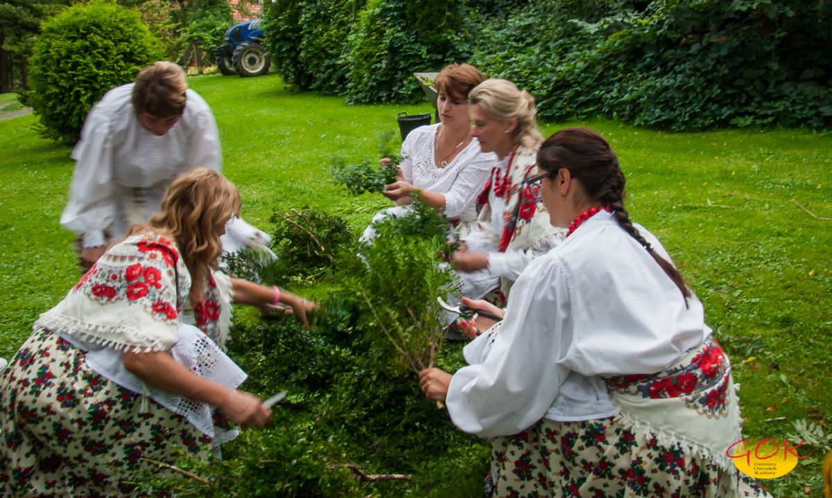 Warsztaty wicia wieńca dożynkowego we dworze w Rzepienniku Biskupim.