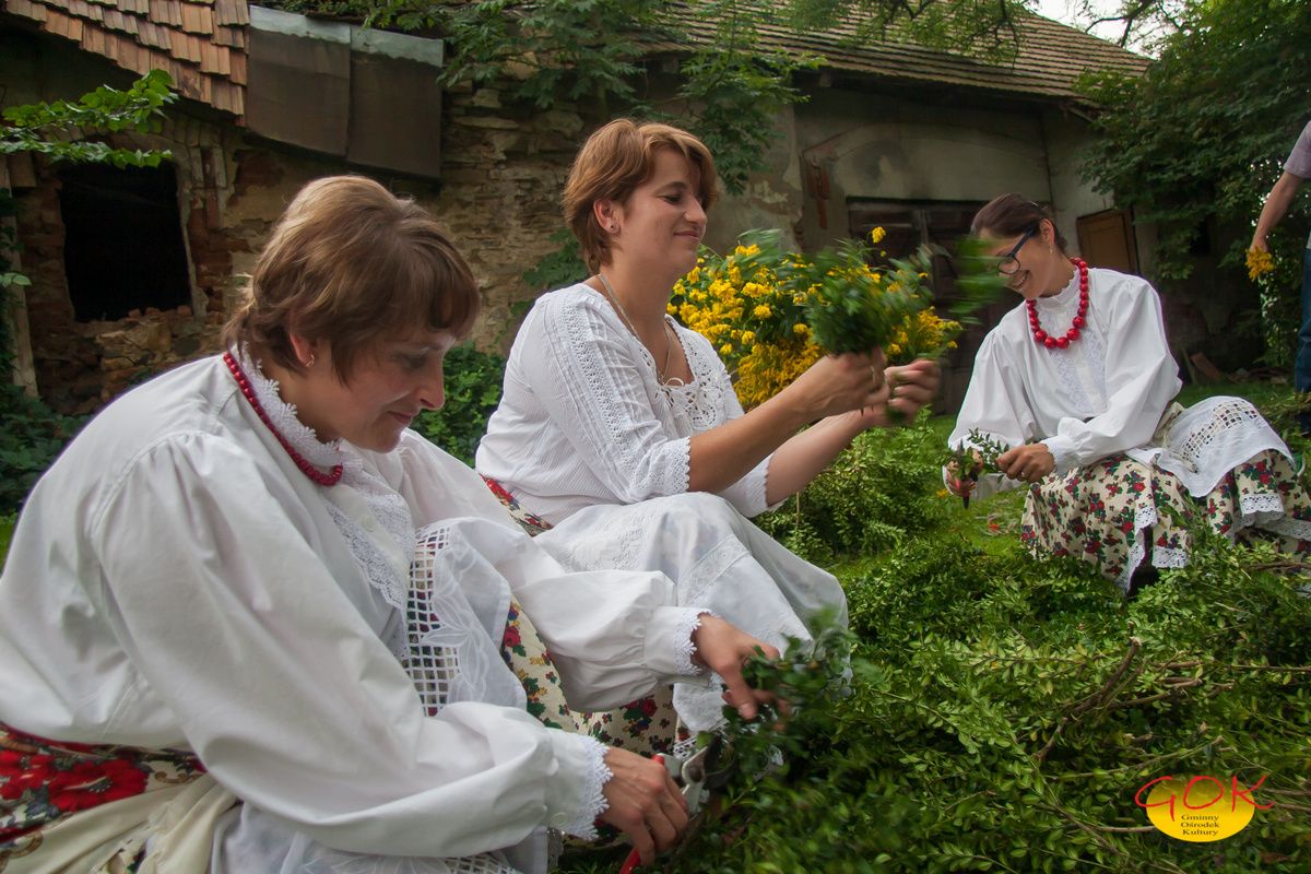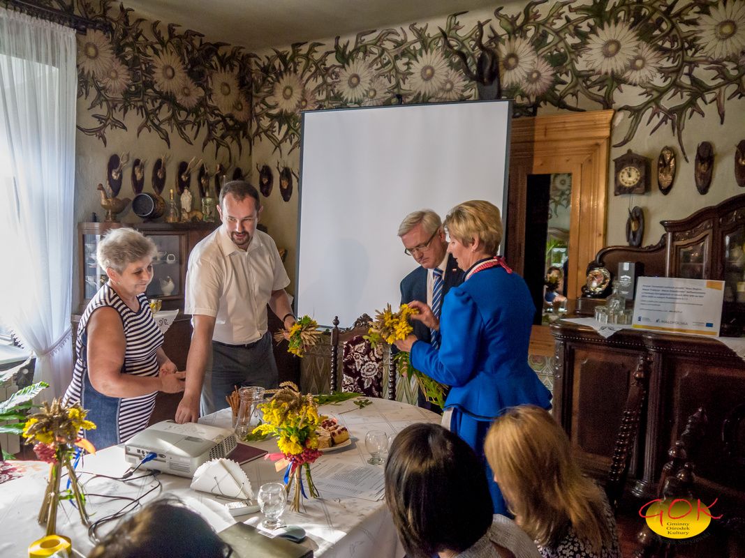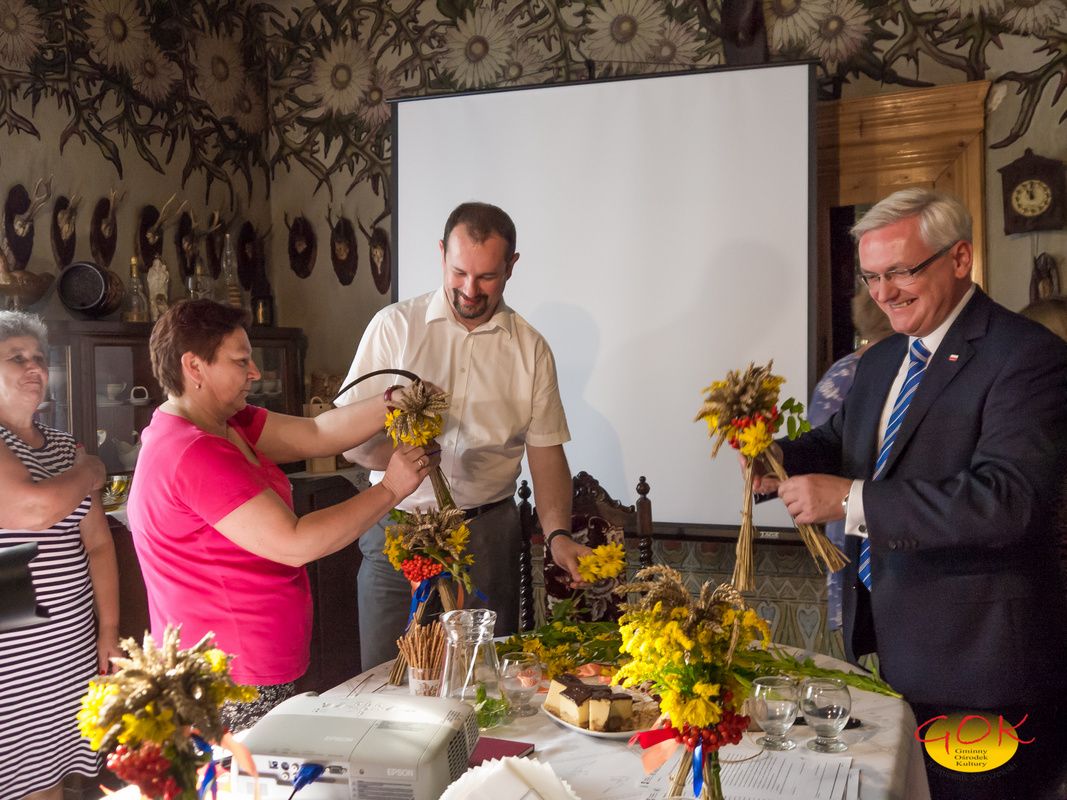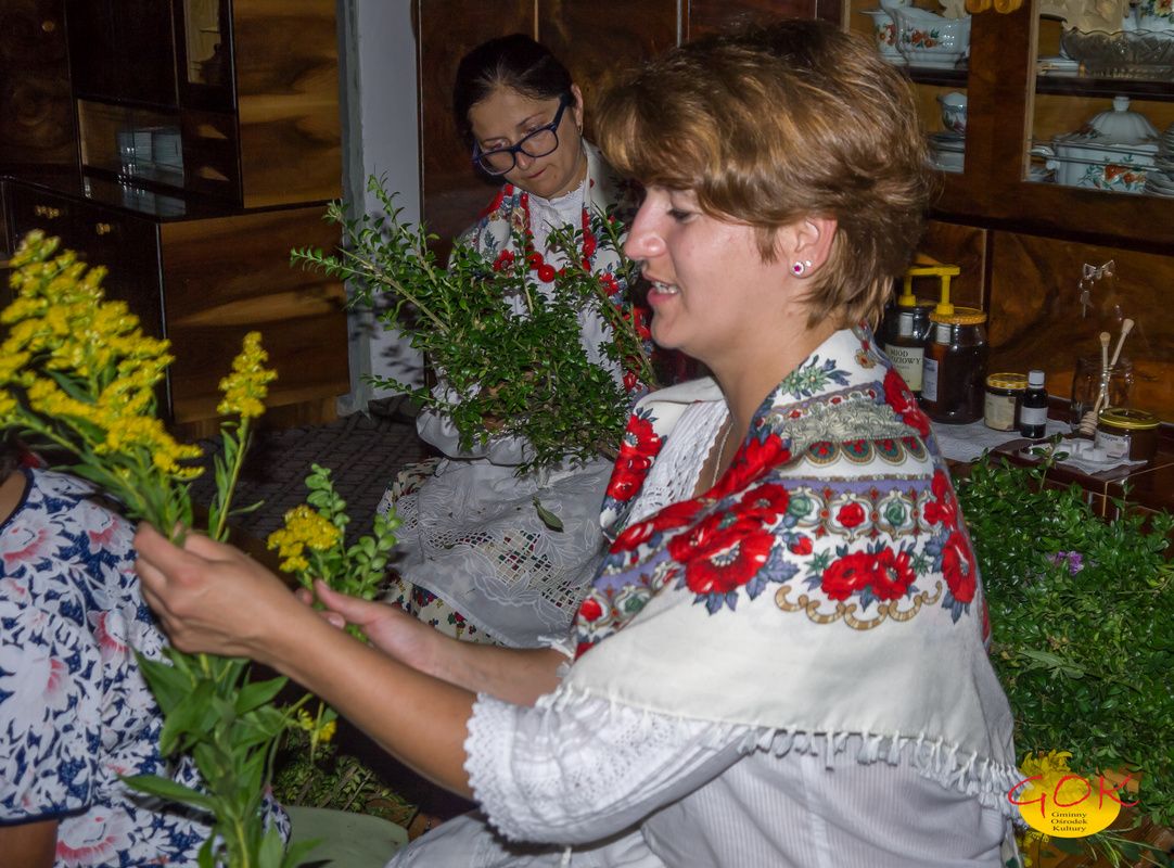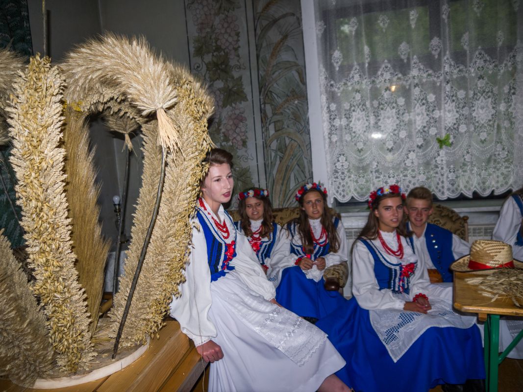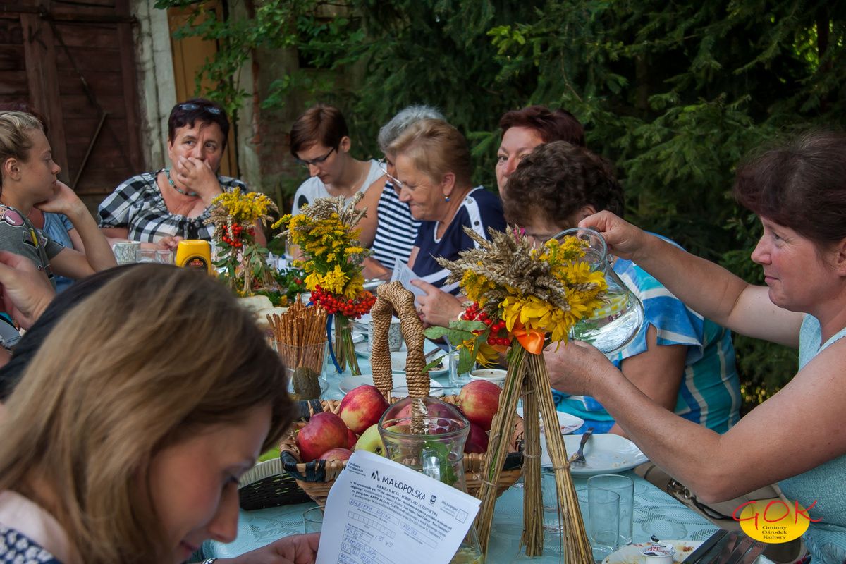 Warsztaty wicia wieńca dożynkowego we dworze w Rzepienniku Biskupim.