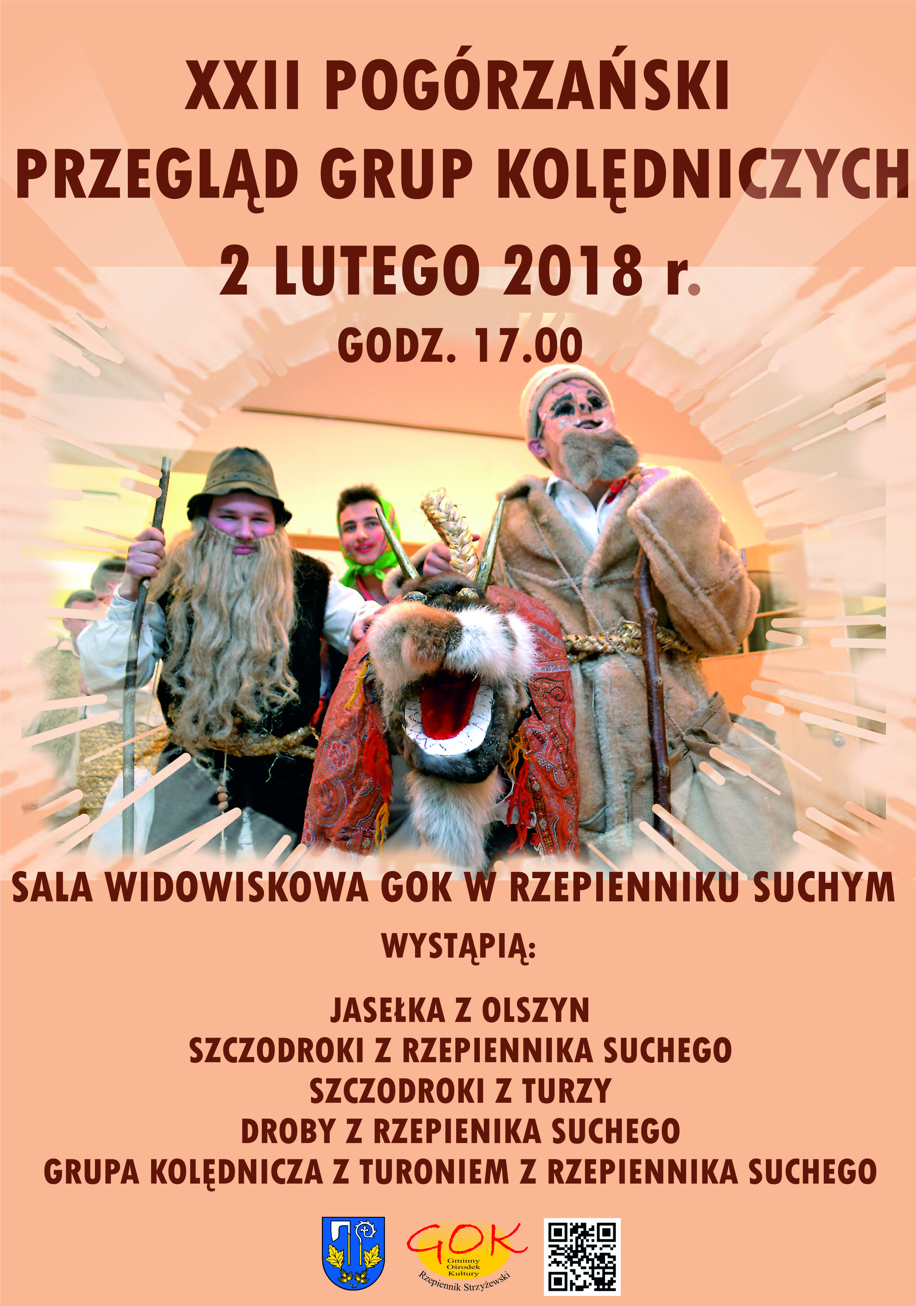 Tradycyjnie 2 lutego na godz. 17.00 zapraszamy do Rzepiennika Suchego na XXII Przegląd Grup Kolędniczych.