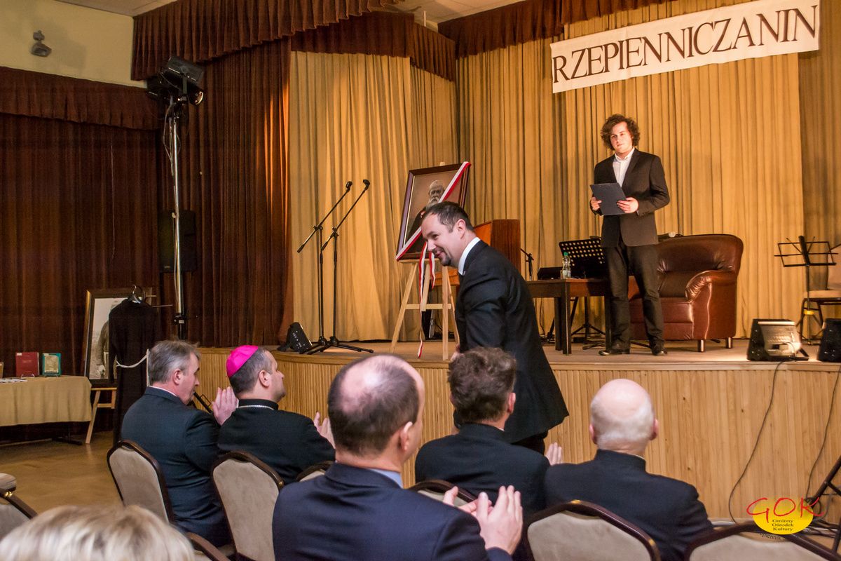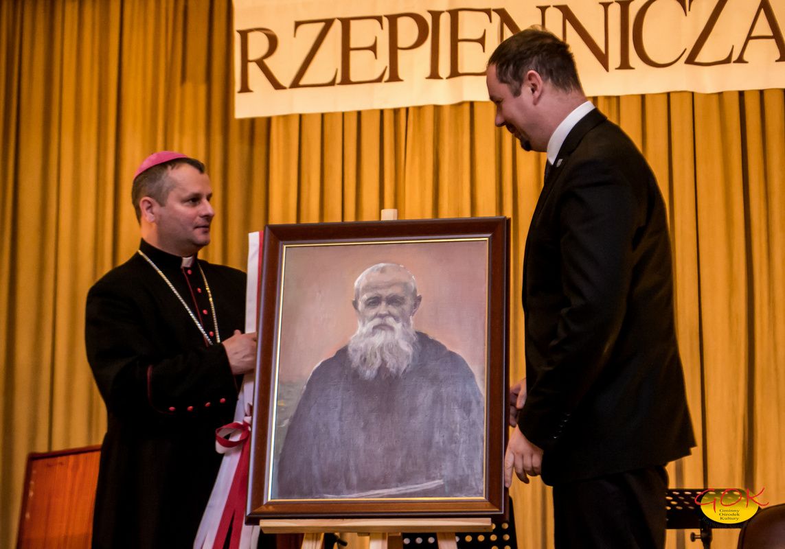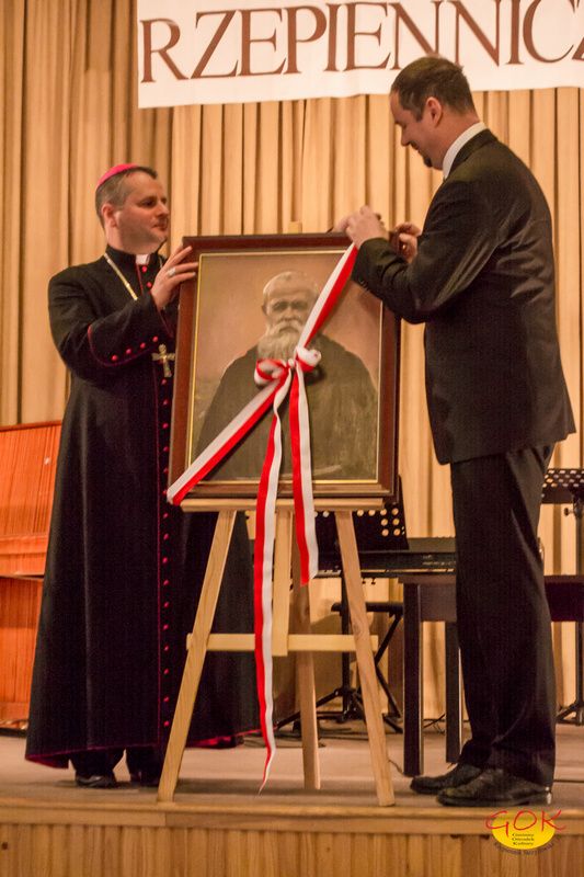 Kolejnym punktem programu był wykład historyka i pisarza Czesława Dutki, który przybliżył nam postać ojca Hieronima. Po odczycie i koncercie pieśni patriotycznych ksiądz biskup Leszek Leszkiewicz oraz wójt gminy Marek Karaś dokonali uroczystego odsłonięcia obrazu przedstawiającego portret ojca Hieronima namalowany przez krakowską artystkę malarkę Annę Grzesik – Juszczak.